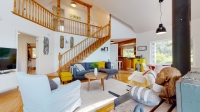 Your Heckman’s Hideaway is nestled in the trees and comes with an open plan main living area, which extends to the outdoors through 2 sets of patio doors opening to an expansive covered deck overlooking a little cove. The impressive interior space features a soaring cathedral ceiling and a southwest aspect to ensure the home is filled with brilliant natural light, and a toasty woodstove keeps this voluminous space cozy come winter. Enjoy main level living with the Primary Bedroom on ground level with walk-in closet and full bath/laundry. The 2nd level gallery overlooks the main living area with a second bedroom and full bath, plus an open office/den area. For visiting family or guests, there’s an additional bedroom and a full bath on the lower level as well. The lower quarters also include a cozy family/TV room, workshop/studio space, plus storage. With 2 sets of patio doors providing private access to the lower level, not to mention great water views, the lower living space also has excellent potential as a self-contained Airbnb unit.