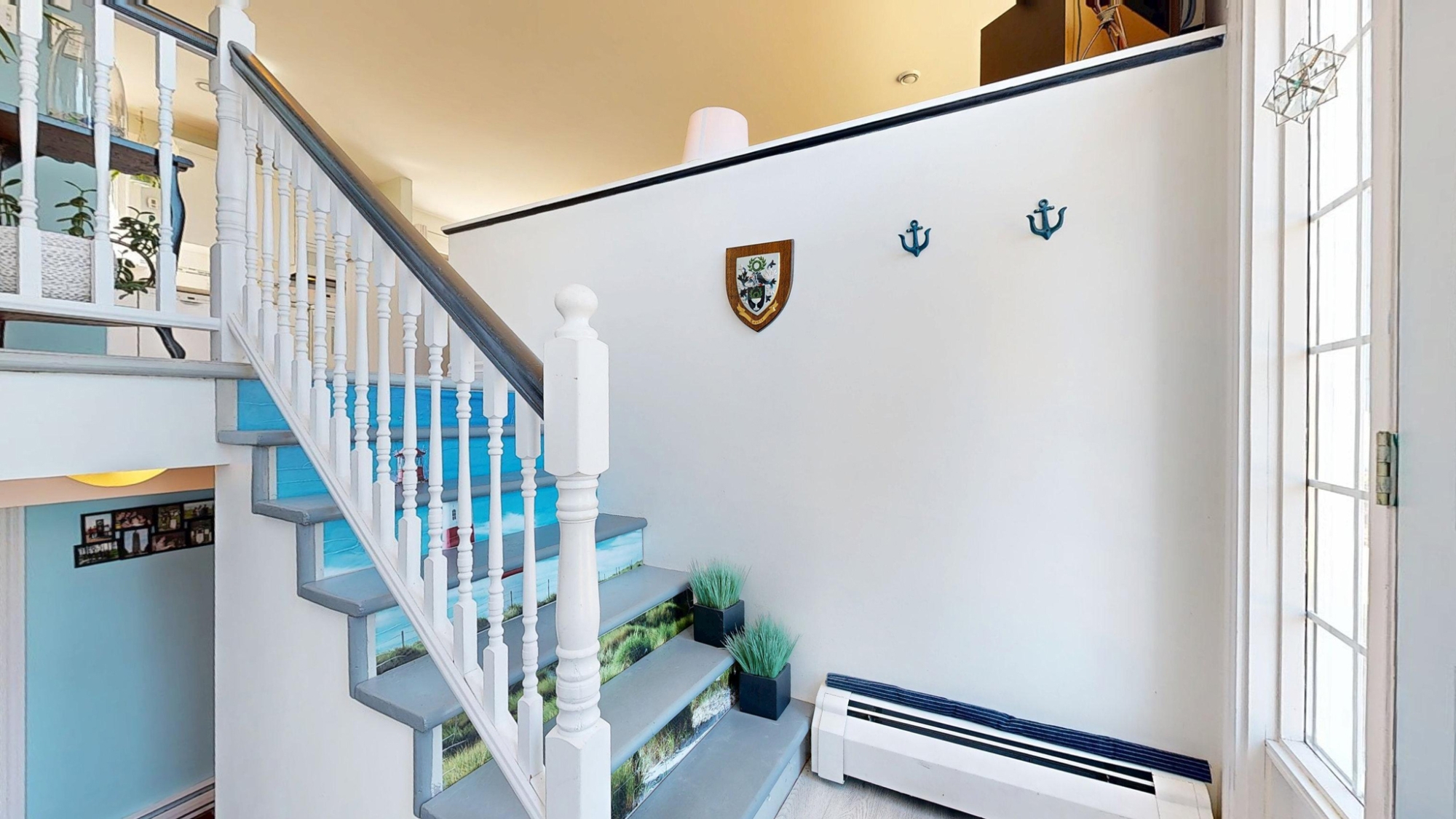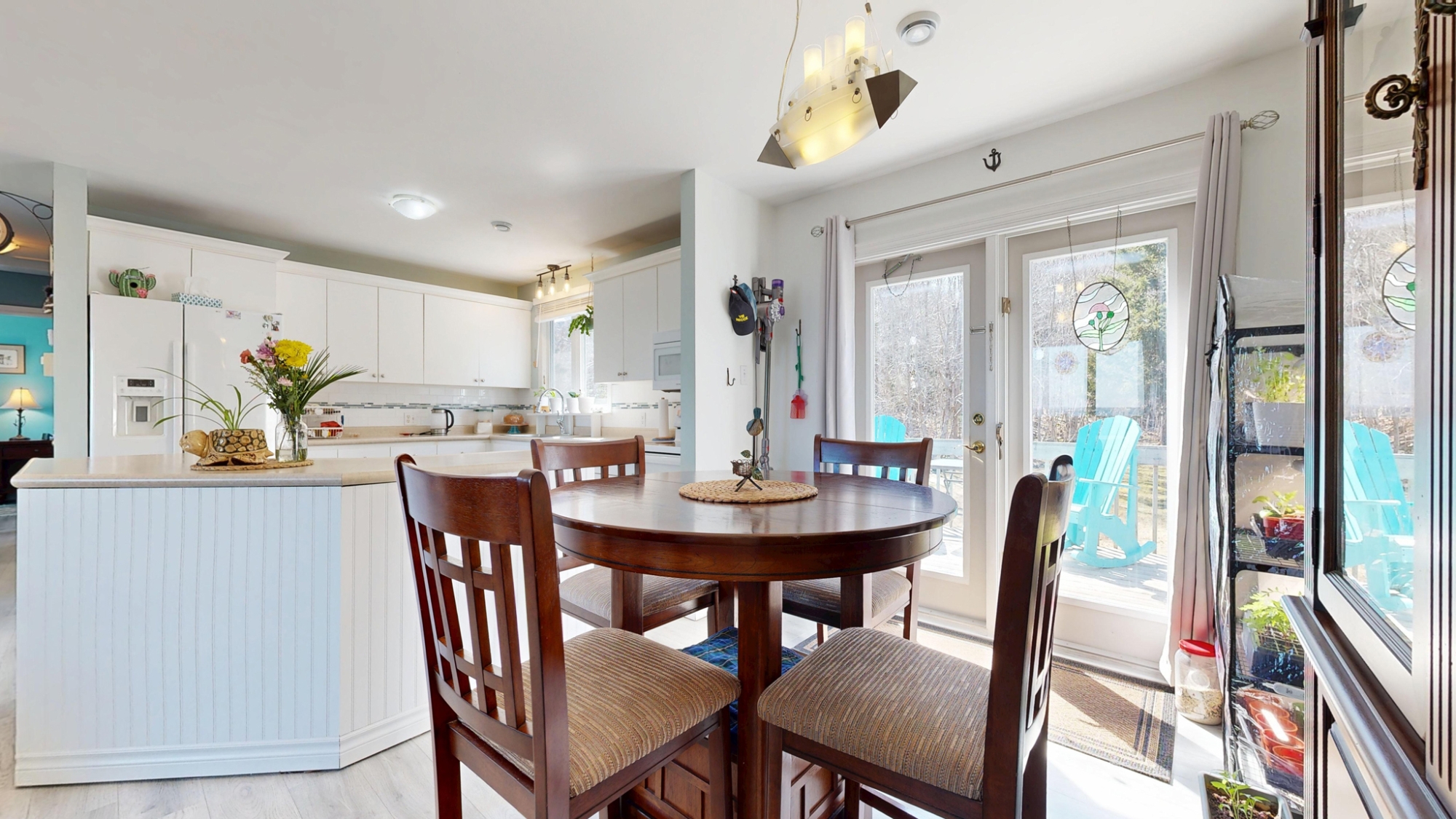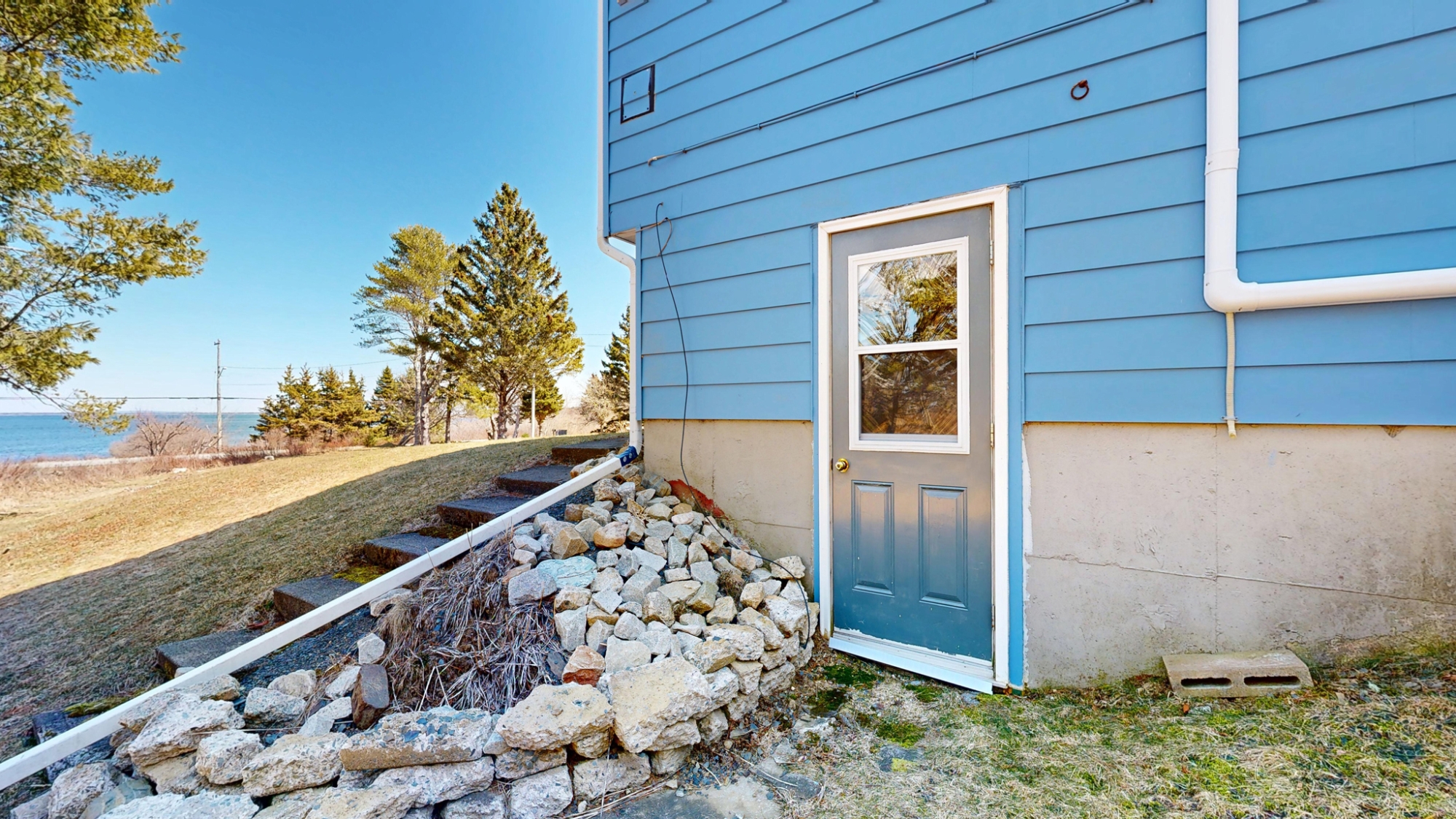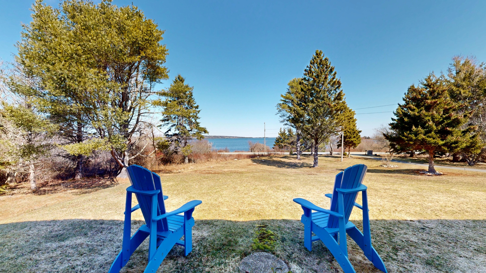 Set well off the road on a private 5-acre parcel is this cheerful 2 level coastal home.  The split-level design affords large windows on both floors, and pretty views from almost every window…watch tall ships in the distance sailing in and out of Lunenburg Bay, or closer to shore, local Lobsterman working their traps.