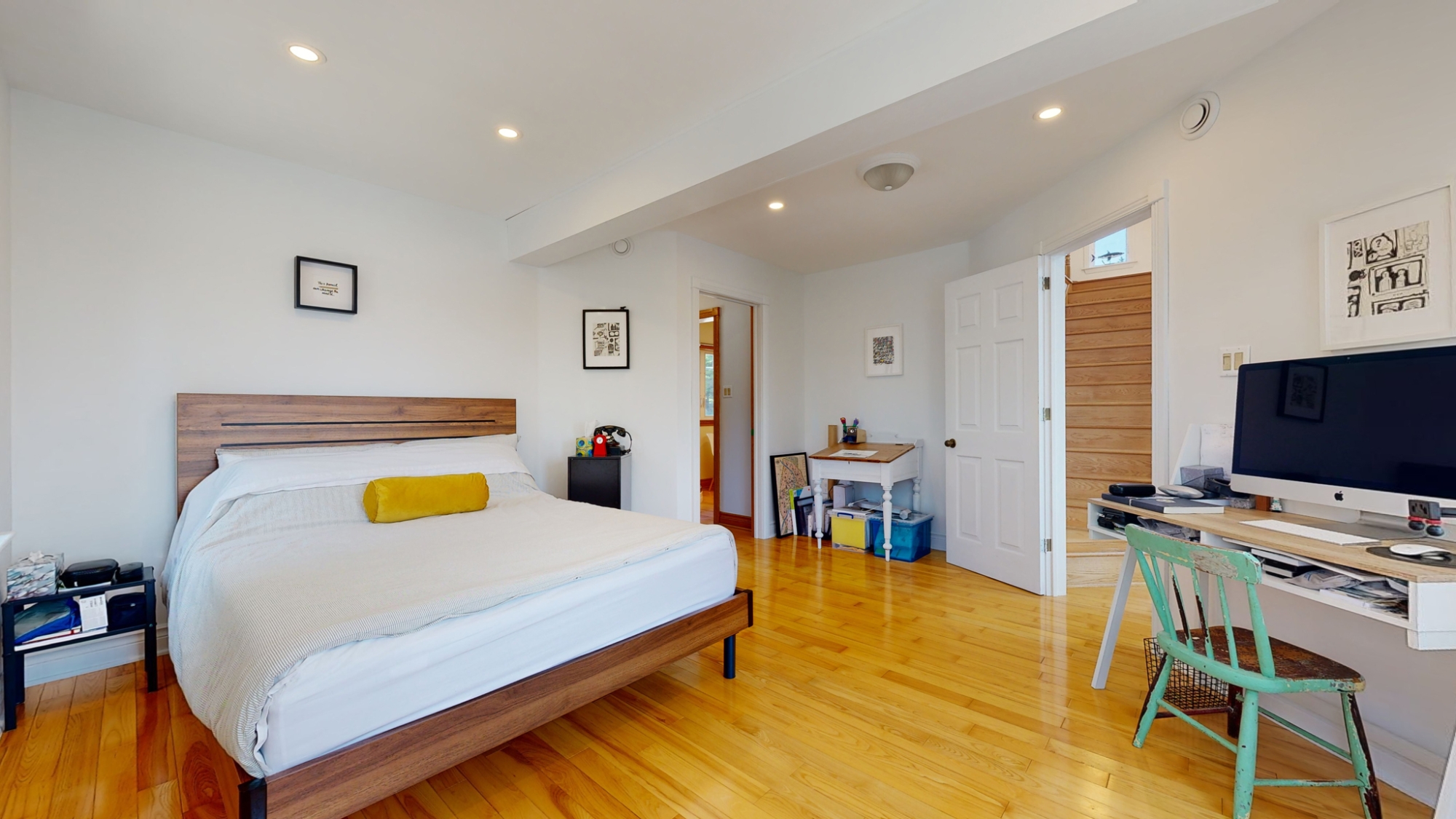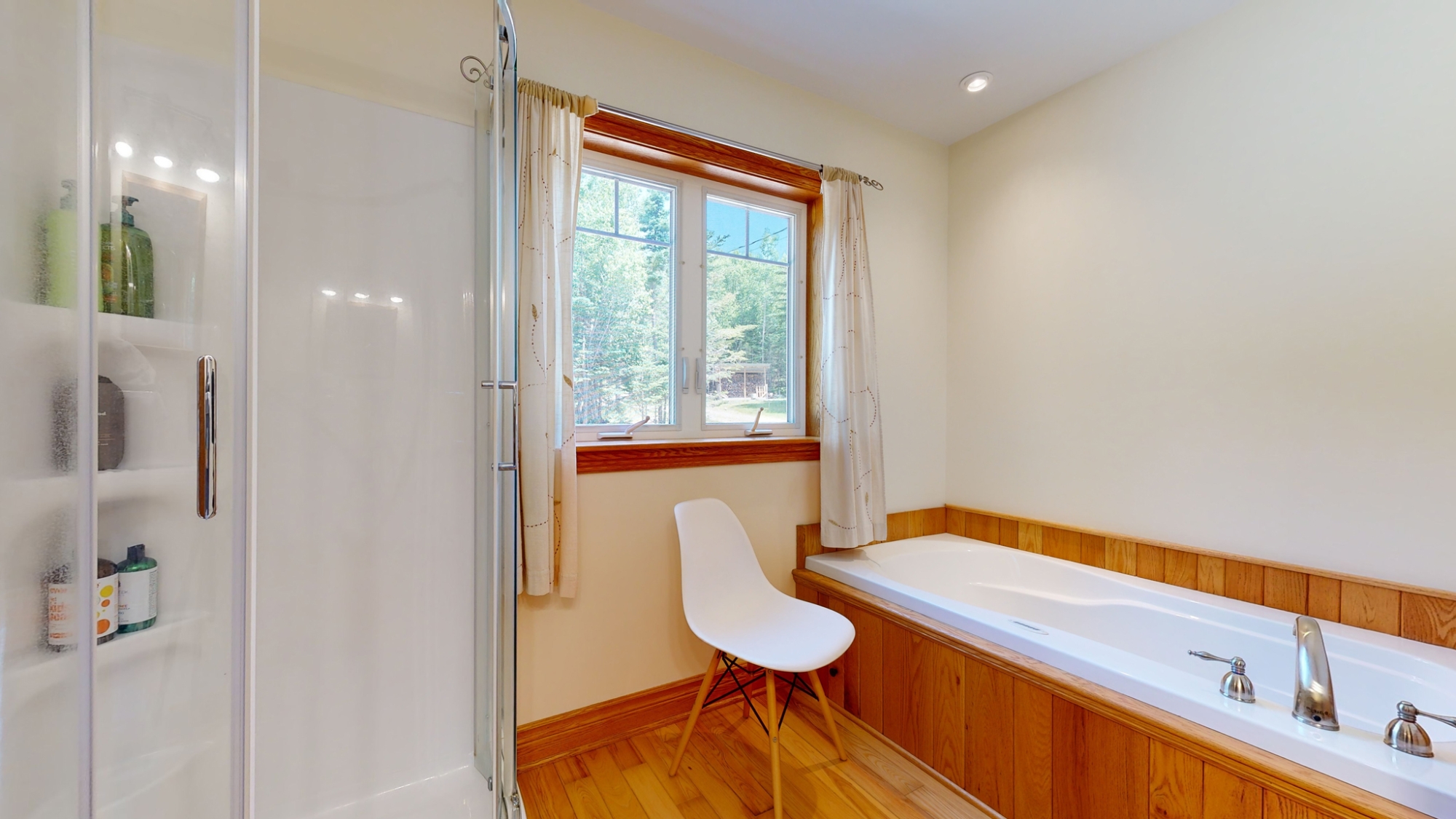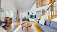 Your Heckman’s Hideaway is nestled in the trees and comes with an open plan main living area, which extends to the outdoors through 2 sets of patio doors opening to an expansive covered deck overlooking a little cove. The impressive interior space features a soaring cathedral ceiling and a southwest aspect to ensure the home is filled with brilliant natural light, and a toasty woodstove keeps this voluminous space cozy come winter. Enjoy main level living with the Primary Bedroom on ground level with walk-in closet and full bath/laundry. The 2nd level gallery overlooks the main living area with a second bedroom and full bath, plus an open office/den area. For visiting family or guests, there’s an additional bedroom and a full bath on the lower level as well. The lower quarters also include a cozy family/TV room, workshop/studio space, plus storage. With 2 sets of patio doors providing private access to the lower level, not to mention great water views, the lower living space also has excellent potential as a self-contained Airbnb unit.