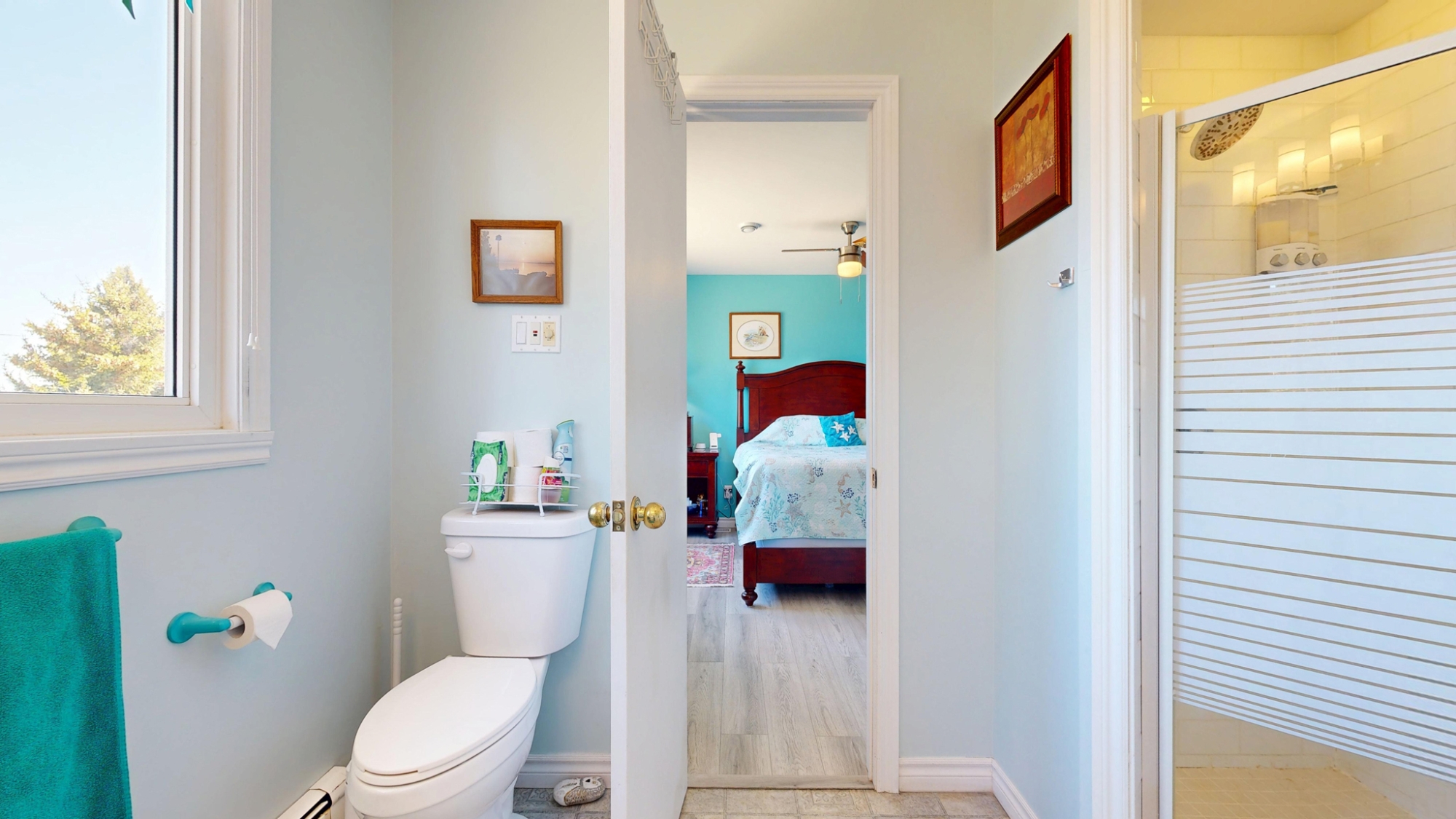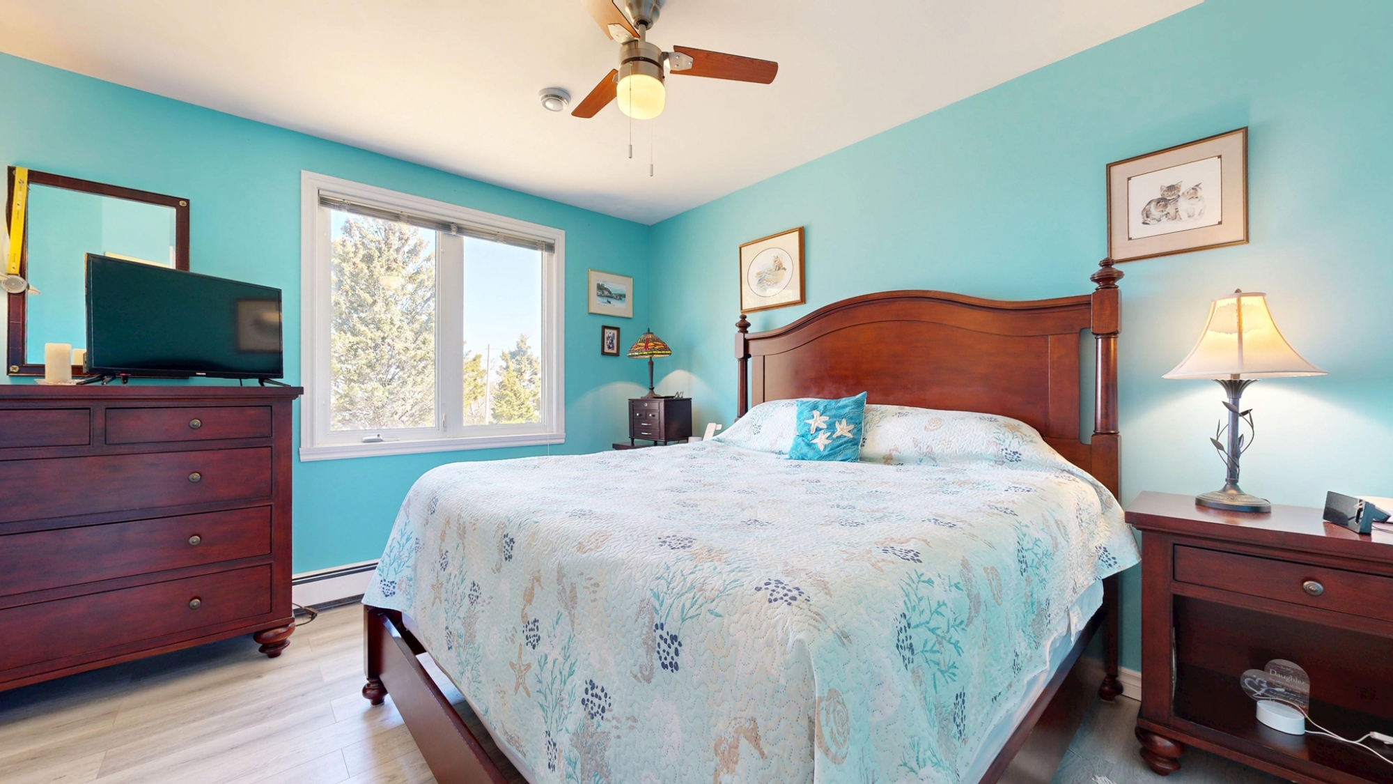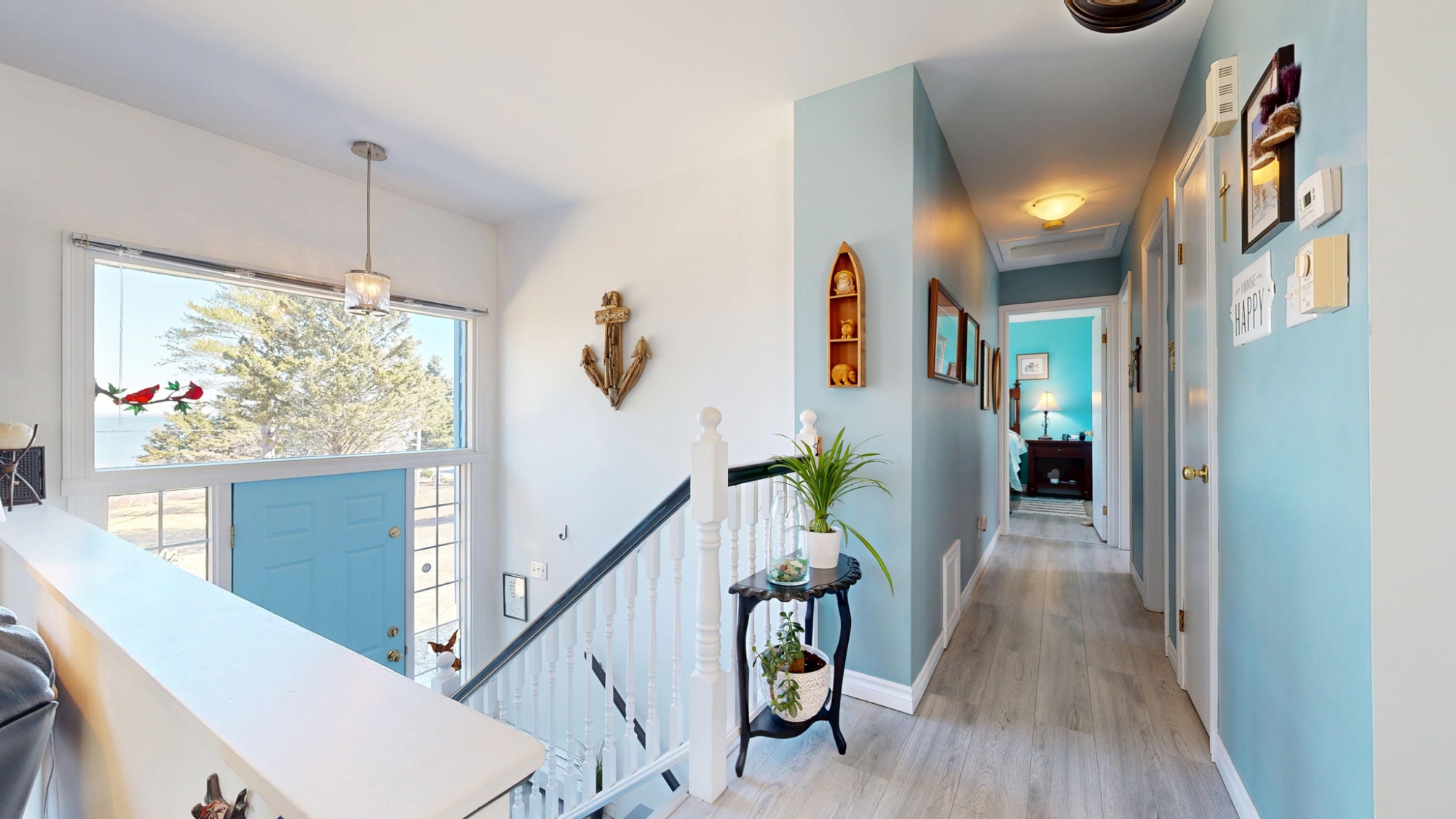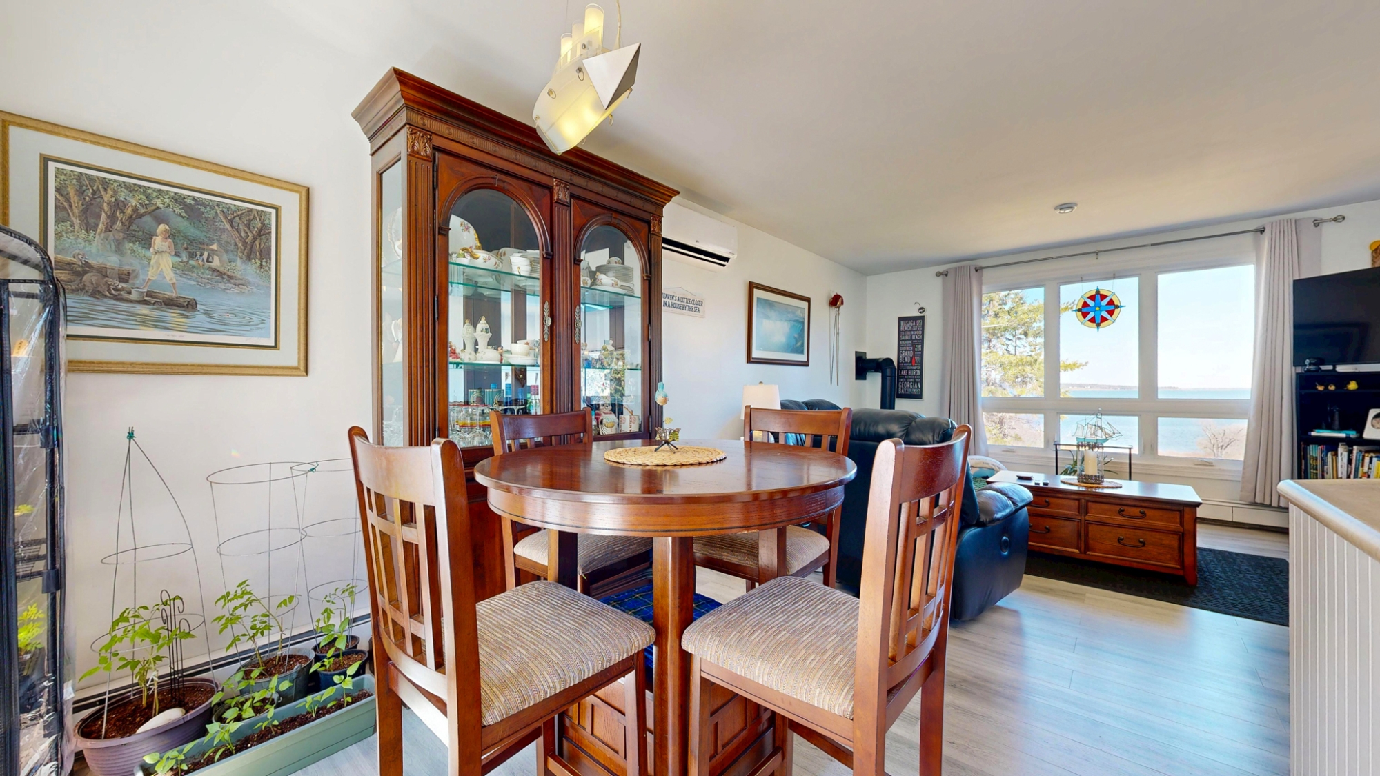 Set well off the road on a private 5-acre parcel is this cheerful 2 level coastal home.  The split-level design affords large windows on both floors, and pretty views from almost every window…watch tall ships in the distance sailing in and out of Lunenburg Bay, or closer to shore, local Lobsterman working their traps.